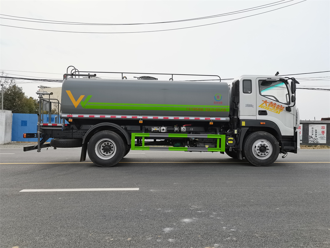 上裝配置:罐體有限容積11.07立方,罐體實際容積14.4方,罐體鋼材厚度5mm,采用大流量水泵60-90,基本灑水功能前沖、后灑、側噴、工作平臺帶消防高炮(可調節成霧狀、直柱狀)、罐體兩側炮筒、可泵進泵出,帶兩根抽水軟管。后平臺可選裝霧炮裝置