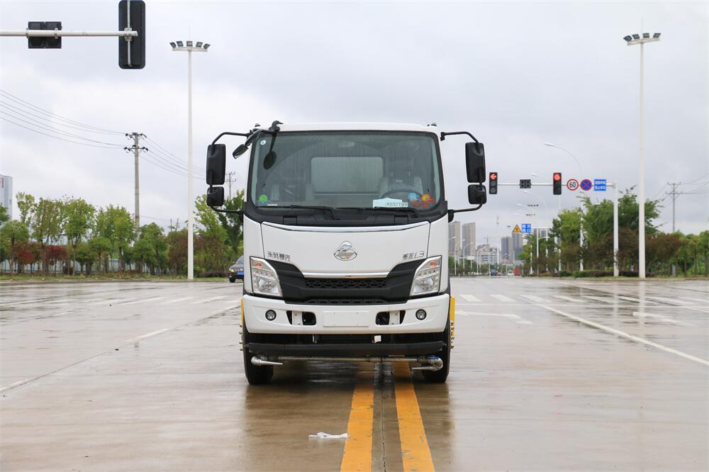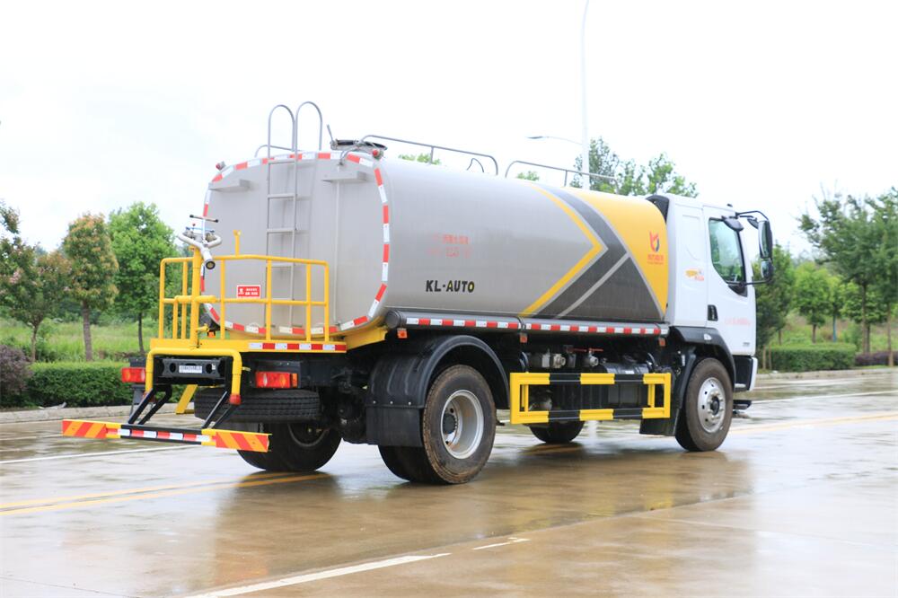 灑水車前裝有鴨形噴嘴或圓頭沖嘴,后面裝有圓柱開灑水噴嘴或蓮蓬頭噴嘴,后部有一工作平臺(tái),裝配有水炮。后部還可裝8個(gè)噴嘴(選裝)。
